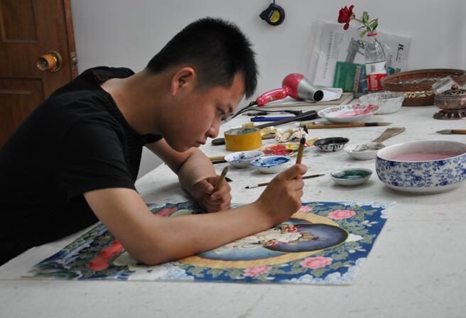 25岁的姚慧清就生于斯长于斯。"朴拙于形,藏慧于心。"初识姚慧清,倒是不由想起了这句古训。坐在面前的他,这一徽画和徽雕的后起之秀,长相帅气,温文尔雅,看上去像刚走出校门的学生。身后的墙上,张挂着的姚慧清绘画作品,仕女人物、花鸟鱼虫,取材广泛。很难想象,这些精美的绘画作品出自一位失聪青年之手。