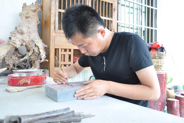 他一坐在工作台上,可以半天不起身。一开始,学雕一些层次少,画面简单的小图案。姚慧清的父亲介绍:"儿子算不得聪明,更不是领悟力高的人。但他最大的优点,就是认真执着。"姚慧清的努力,正应了"天道酬勤"四个字,很快,他成了同门师兄弟中持刀最稳健、刀力最雄浑、刀法最老辣的一个。