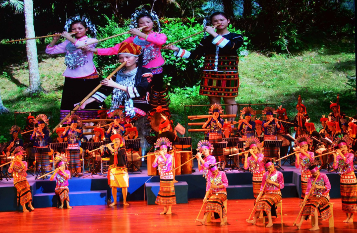 保亭把黎族传统竹木器乐搬上舞台。图为鼻萧演奏。