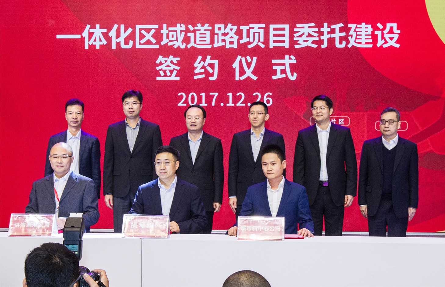 当日,十字门隧道、黑白面将军山隧道、大横琴山隧道、横琴新区海绵城市第一批示范项目、城市花园、中国铁建广场、光大控股华南区域总部、横琴天沐琴台、横琴科学城等九个一体化区域重点项目也同时启动。这批项目的启动,标志着横琴、保税区、洪湾片区一体化区域建设正式拉开了序幕。同时,还举行了珠海大横琴投资有限公司银行授信签约仪式。据悉,目前,大横琴公司与十家银行机构,达成共计2600亿元的综合授信合作。
