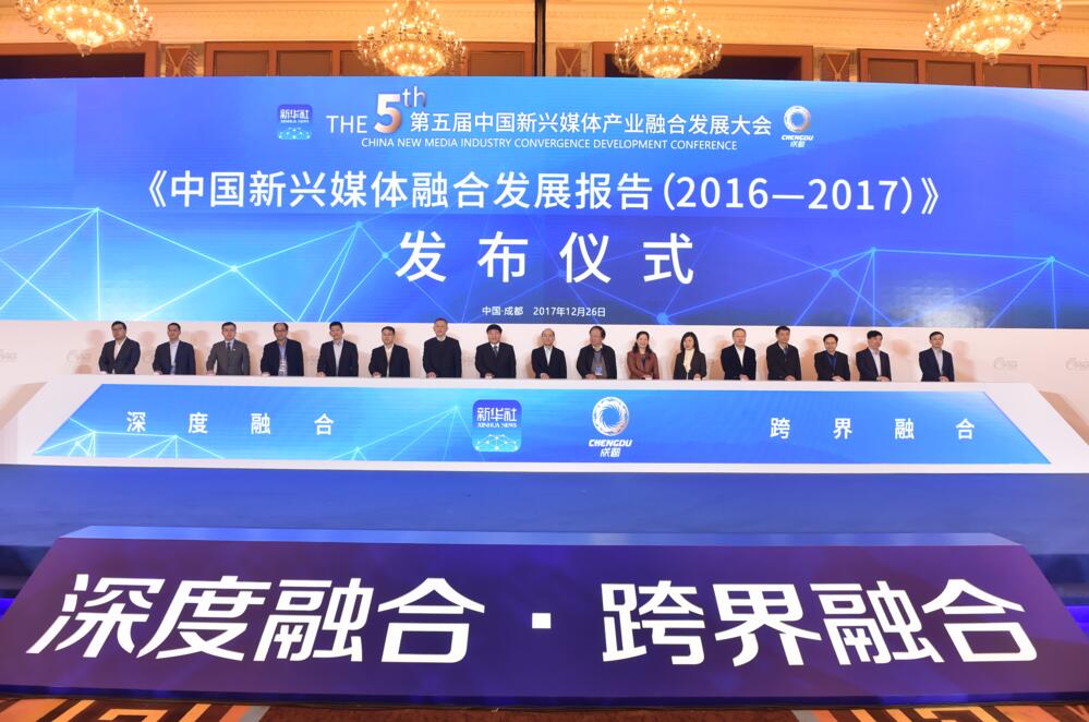 【香港商报网讯】记者郭代勤报道:12月26日,由新华社和成都市人民政府共同主办的“第五届中国新兴媒体产业融合发展大会”在成都举行,大会以“深度融合·跨界融合”为主题开展跨界探讨和交流。同时发布《中国新兴媒体融合发展报告(2016-2017)》。