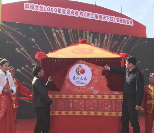 发布会上嘉宾为崇仁麻鸡LOGO形象揭幕