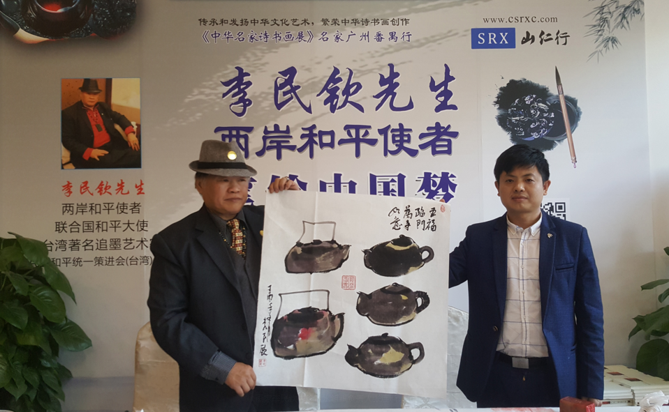 【香港商报网讯】记者李苑立报道:12月24日,由“珍惜水保护水公益活动”组委会、广州山仁行文化发展有限公司等单位联合举办的中华名家诗书画展在广州番禺举行。台湾艺术家李民钦为广州番禺民众献上一场精彩的绘画艺术,其独创的台湾追墨艺术吸引了众多市民出席欣赏。