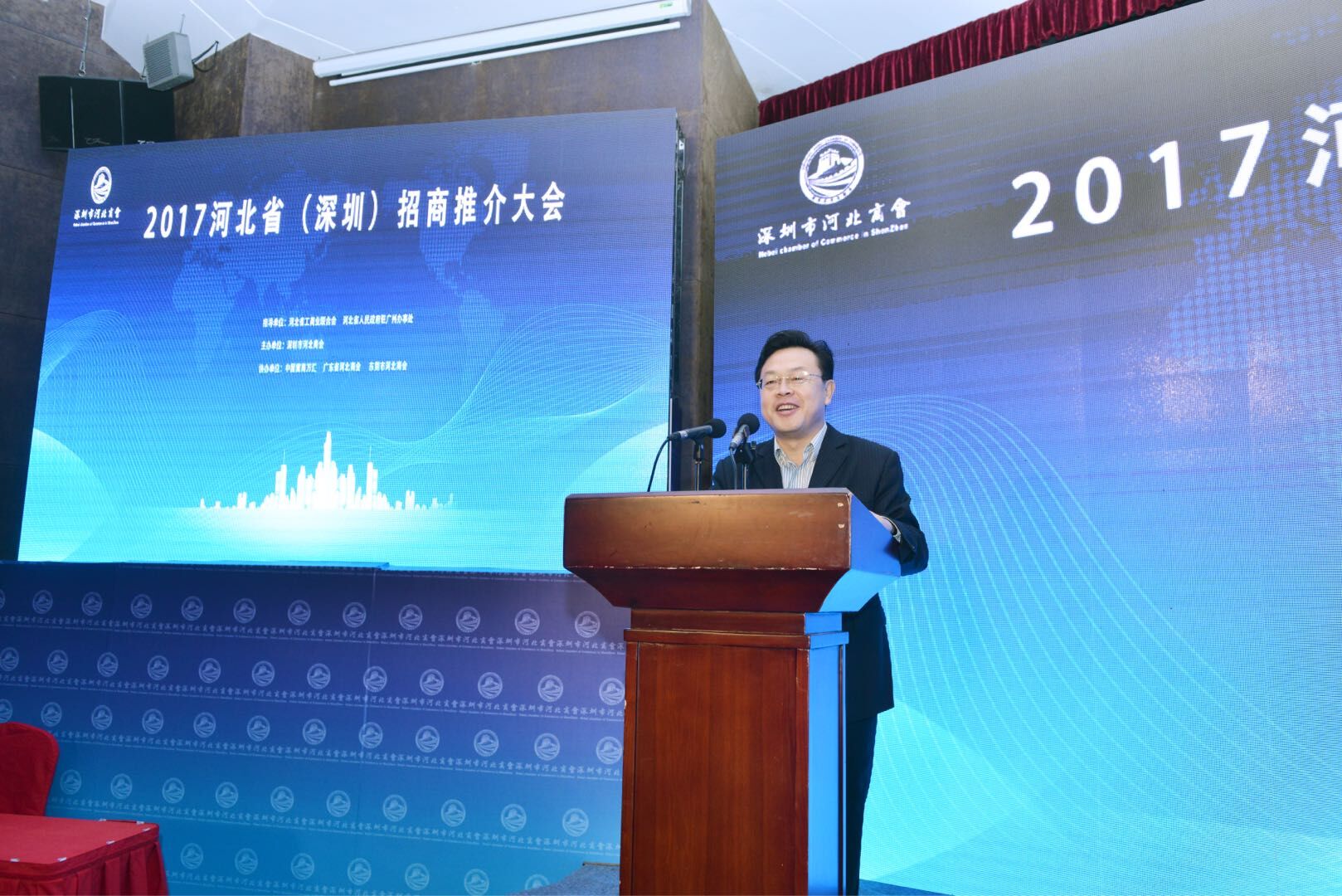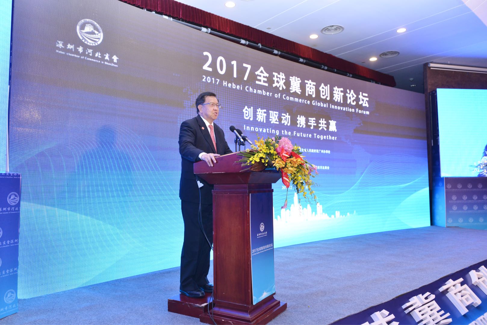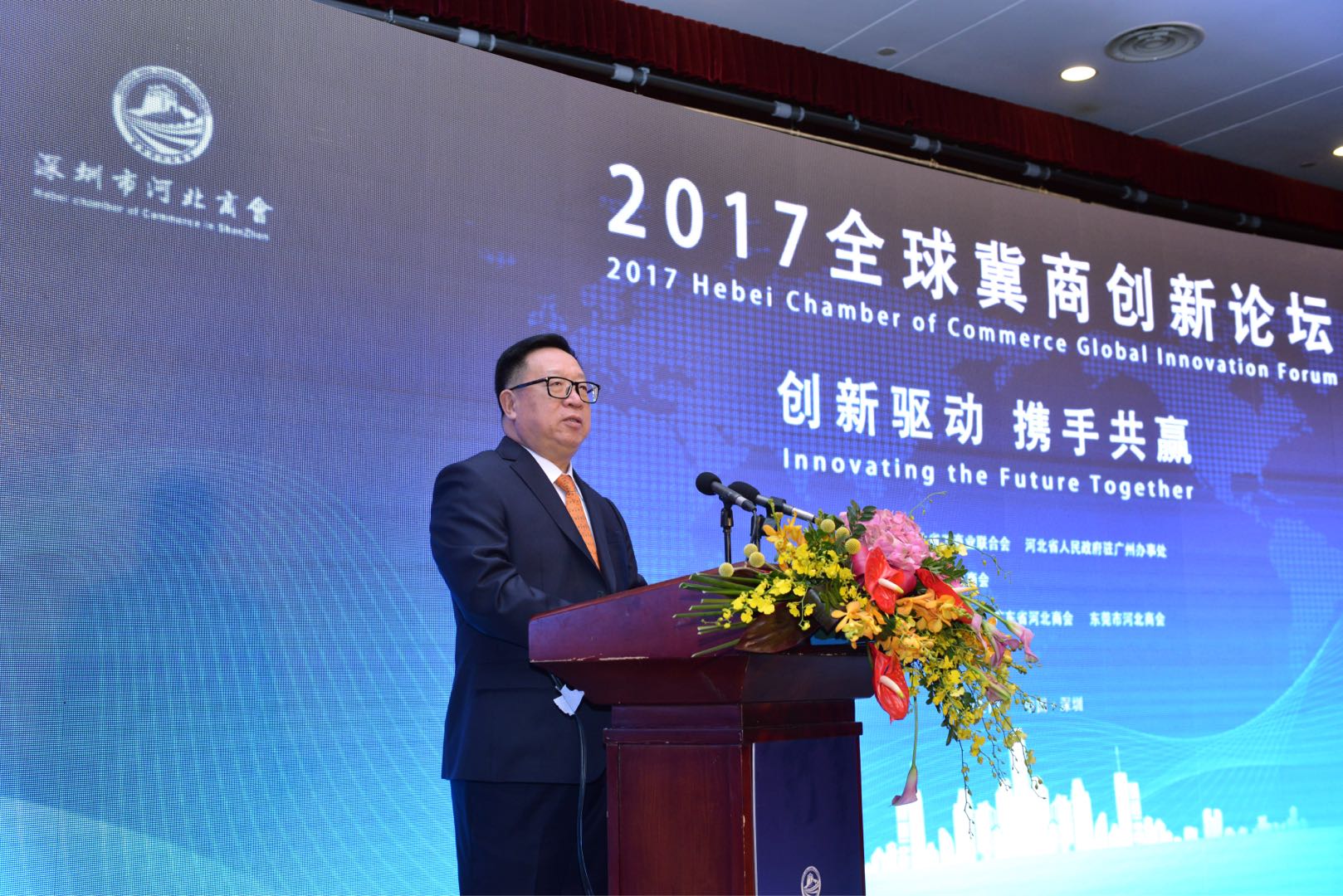 深圳市河北商会会长、深圳市中安防投资控股有限公司董事长杨金才在2017全球冀商创新论坛上致辞。
