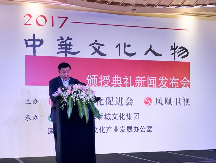 【香港商报网讯】记者朱开芝、通讯员王晓菲、张妤婕报道:由中华文化促进会、凤凰卫视联合主办,华侨城文化集团、深圳龙岗区文化产业发展办公室承办的“2017中华文化人物”评颁活动新闻发布会日前在深圳举行。文促会主席王石、副主席董亚平,凤凰卫视中文台执行台长高雁,深圳华侨城文化集团总经理胡梅林以及深圳华侨城文创投资有限公司和龙岗区文化产业发展办公室有关领导出席发布会。