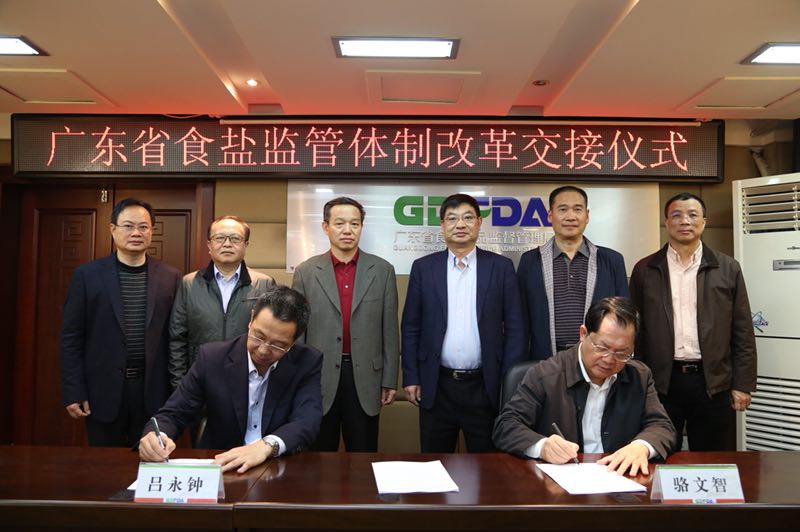 12月26日,广东省食品药品监督管理局与广东省盐业集团(省盐务局)进行了食盐监管体制改革职能交接,双方签署了《广东省食盐监管体制改革职能交接协议书》,定于2018年1月1日起,该省盐业集团(盐务局)承担的食盐质量安全管理与监督职能,正式划入省食品药品监督管理局。