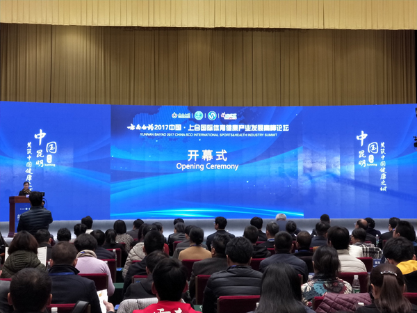云南省副省长高峰在开幕式致辞时表示,体育是健康事业的重要组成部分,云南得天独厚的气候优势、环境优势、区位优势、开放优势,以及成熟的旅游资源,为发展健康体育产业奠定了良好的基础。海埂体育训练基地、红塔体育训练基地等训练场地,已经成为国内乃至世界各国高原体育训练的首选。明天即将开跑的上合昆明国际马拉松赛,是迄今为止中国海拔最高的城市全马赛事。他表示,云南将努力推动健康体育产业发展,借助外力、吸引投资,打造品牌产品,将云南建成国内外知名的高原体育训练基地和体育比赛、体育休闲、体育旅游、体育用品产销大省,努力把昆明打造成为健康产业发达、健康服务完善、健康品牌靓丽、健康文化鲜明、具有国际影响力的中国健康之城。