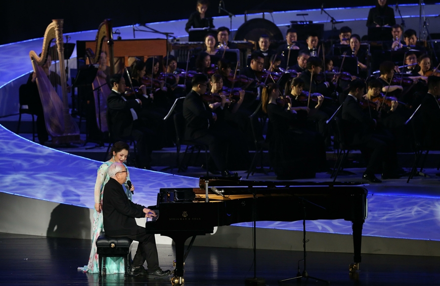 【香港商报网讯】记者张春宁报道:29日20时25分,“光辉时刻”之哈尔滨——王立平作品交响音乐会进入尾声,现场观众全体起立并送上昨晚最热烈的掌声。《太阳岛上》作者王立平老先生健步走上舞台,并亲自弹奏、演唱《大海啊故乡》,“这是一首关于爱的歌,我想用爱回报观众,用爱回报我的第二故乡,用爱回报这个伟大的时代。”王立平说。