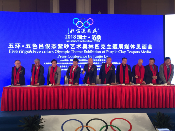 【香港商报网讯】记者杜林、 戎晨报道:1月2日,“为奥运喝彩”五环·五色吕俊杰紫砂艺术奥林匹克艺术主题展媒体见面会在宜兴紫砂宾馆举行。“五环·五色吕俊杰紫砂艺术奥林匹克主题展将于3月在瑞士奥林匹克博物馆正式开展,这是中国陶瓷艺术作品第一次走进奥林匹克博物馆。