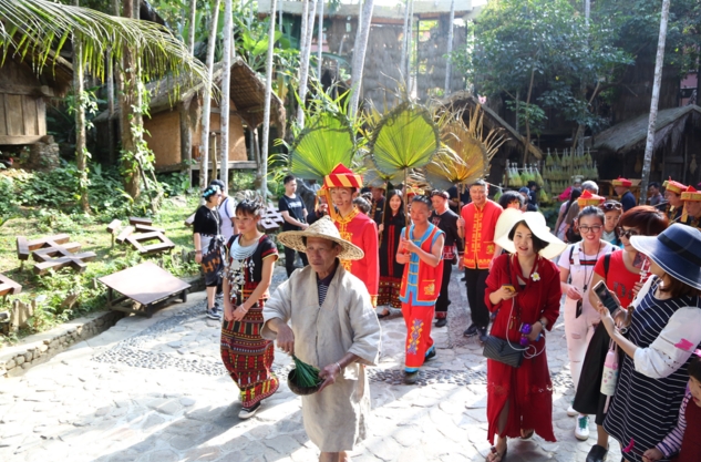 保亭槟榔谷景区元旦上演原汁原味的黎族传统婚礼巡游受到游客追捧