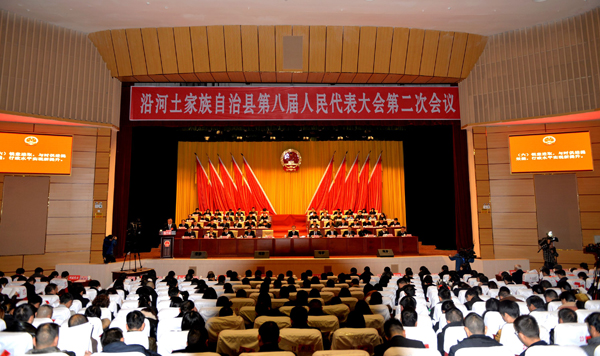 下午15:30分,大會在莊嚴的國歌聲中開幕。沿河縣人民政府縣長何支剛代表縣人民政府作《政府工作報告》。