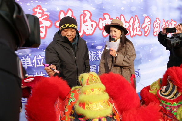 长春市旅游局副巡视员曹广彬为舞狮点睛