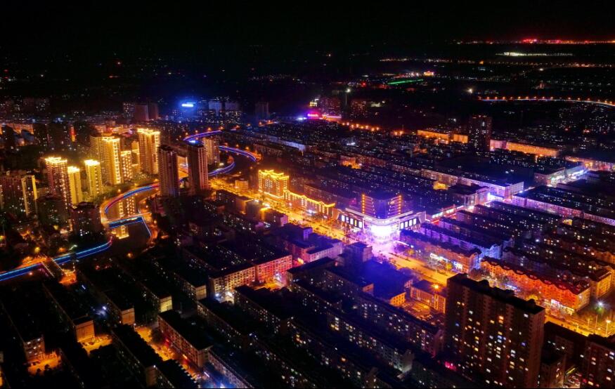 云上四平 幻彩夜色——蜿蜒的南河与英雄大街。