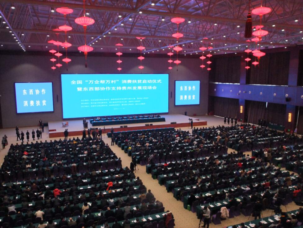 1月10日,由全国工商联、国务院扶贫办、贵州省政府联合主办的全国“万企帮万村”消费扶贫启动仪式在贵州安顺大兴东健康产业园举行。会议旨在贯彻落实党的十九大精神和全国扶贫工作会议精神,营造消费扶贫社会氛围,利用东西部扶贫协作机制支持贵州发展,推动“万企帮万村”精准扶贫行动提质增效。