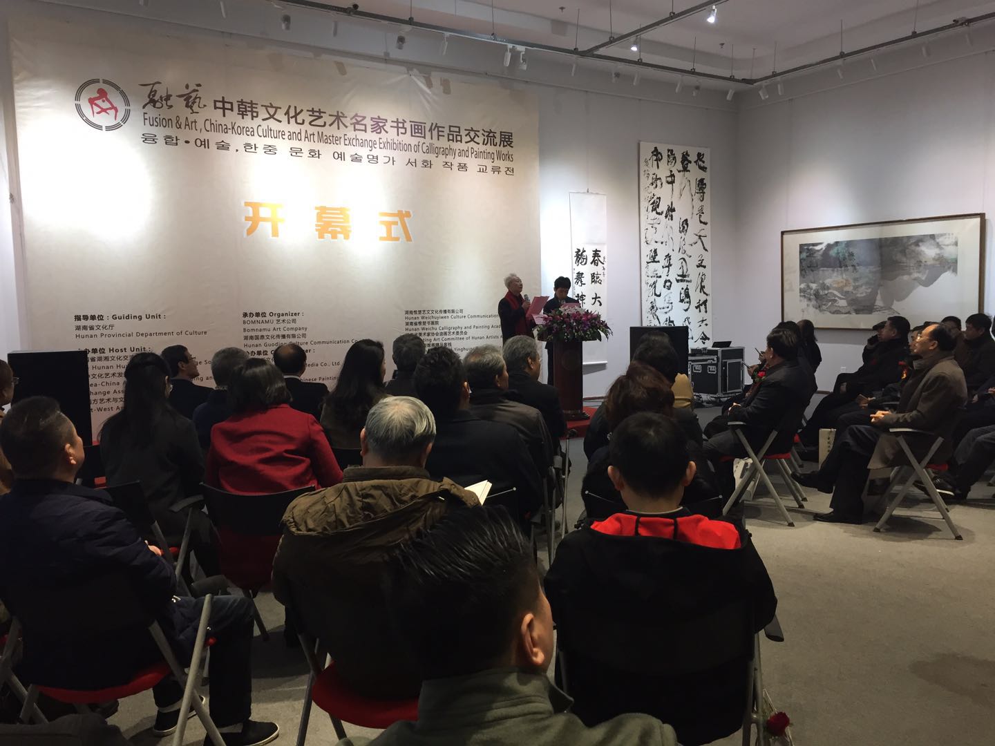 【香港商报网讯】记者 肖建花报道: 1月10日上午,2018“融艺.中韩文化艺术名家书画作品交流展”在湖南省国画馆举行,来自中韩两国的书画艺术家及各界人士共同为展览启幕。