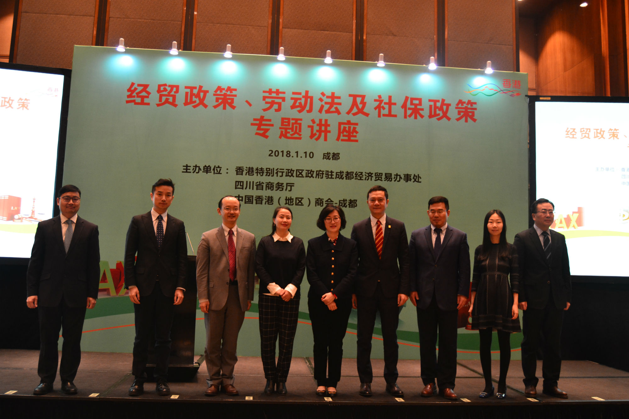 【香港商报网讯】记者梅超、史振华报道:10日,由香港特区政府驻成都经济贸易办事处、四川省商务厅和中国香港(地区)商会–成都联合举办的“经贸政策、劳动法及社保政策专题讲座”在成都举行。