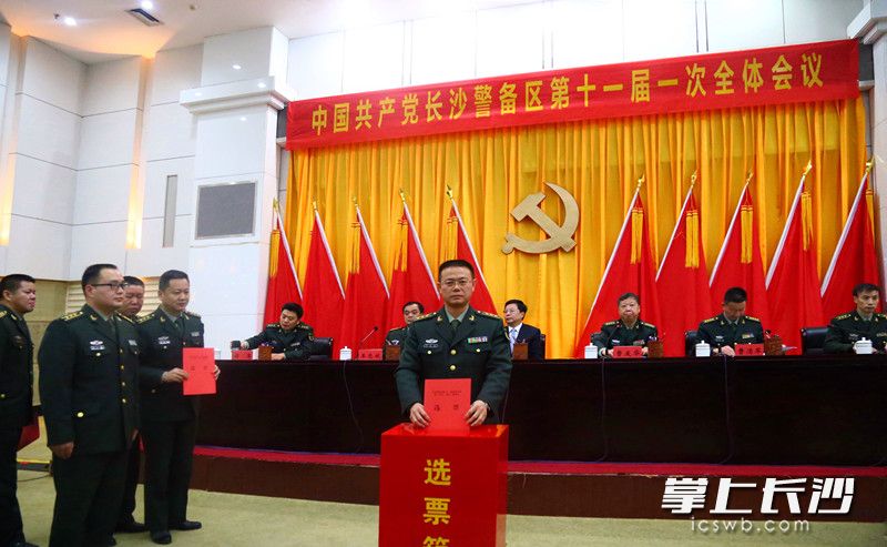 今天下午,长沙警备区党委十一届一次全会召开。图为代表们在投票选举。 长沙晚报通讯员 徐诗玉摄