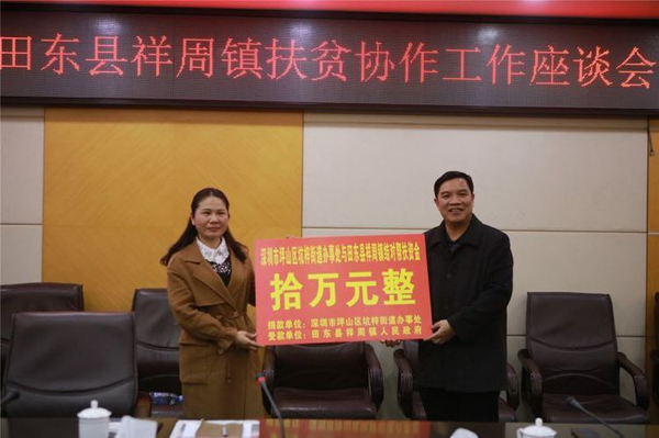 【香港商報網訊】記者焦家志 通訊員宋威龍、劉啟明報道 :按照廣東·廣西扶貧工作聯席會議的部署要求,進一步拓展坑梓街道與廣西百色市田東縣祥周鎮扶貧協作工作的深度和廣度,深化結對幫扶,1月10日-11日,田東縣祥周鎮扶貧工作調研組一行來到坪山區坑梓街道調研交流結對幫扶工作。
