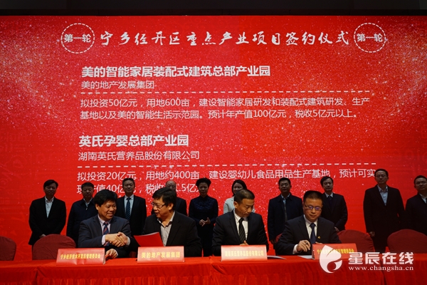 本次签约项目中,美的智能家居装配式建筑总部产业园将建设智能家居研发、生产基地和装配式建筑研发、生产基地以及美的智能生活示范园,达产后预计实现年产值100亿元,税收5亿元以上。该项目落户后,宁乡经开区智能家居和装配式建筑产业将形成数家行业领军企业齐头并进的产业发展态势,产业集聚效应将进一步得到扩大。