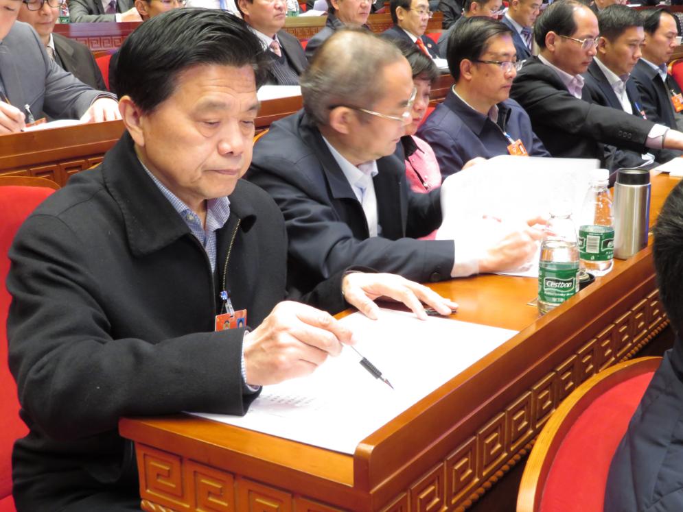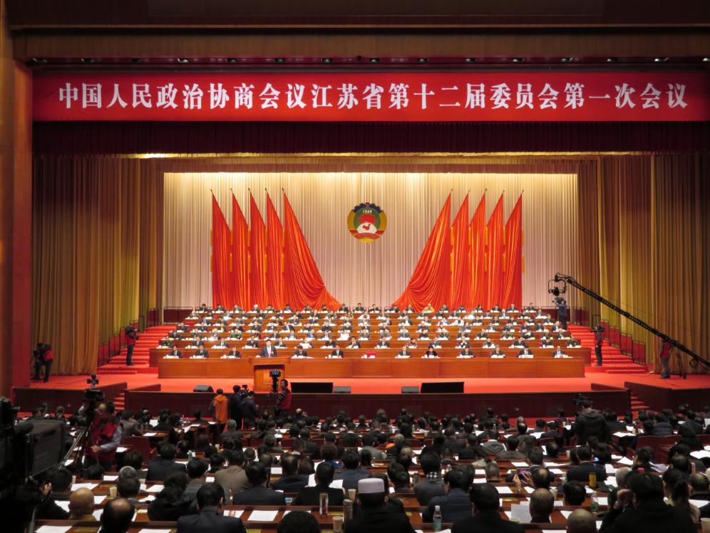 政协江苏十二届一次会议开幕,委员认真学习江苏省委书记娄勤俭讲话。