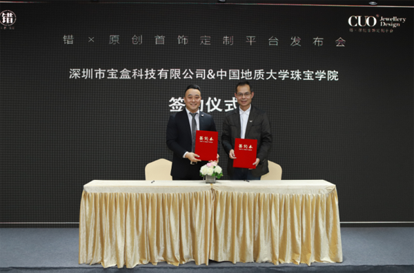 【香港商报網讯】记者易小婧通讯员房瑕瑜报道:25日,“错×原创首饰定制平台”发布会在深圳市罗湖区万通大厦2楼粤港澳版权产业园隆重举行。中国地质大学(武汉)珠宝学院院长杨明星、深圳市罗湖区经济促进局副调研员戴泽桦、深圳市罗湖区投资推广局副局长蓝莹莹、深圳市罗湖区投资推广局副处长郑强、深圳市版权服务中心主任李江宁、深圳市宝盒科技有限公司创始人兼CEO胡张伟,以及深圳宝玉石行业协会、深圳市珠宝首饰设计师行业协会的领导及嘉宾共同出席了该发布会。杨明星院长、李江宁分别发言致辞,随后举行了隆重的签约仪式。