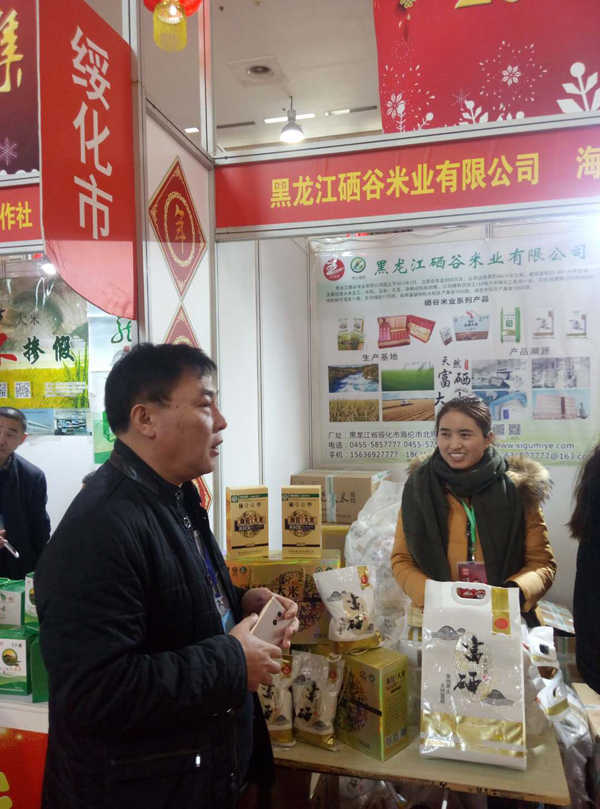 【香港商报网讯】25日,第四届黑龙江-北京绿色有机食品产业博览会在全国农业展览馆3号馆盛大开幕,来自“中国黑土硒都”——海伦市的富硒优质农产品独树一帜,硒谷米业的富硒大米受到北京市民的热捧,成为展会一大热卖点。