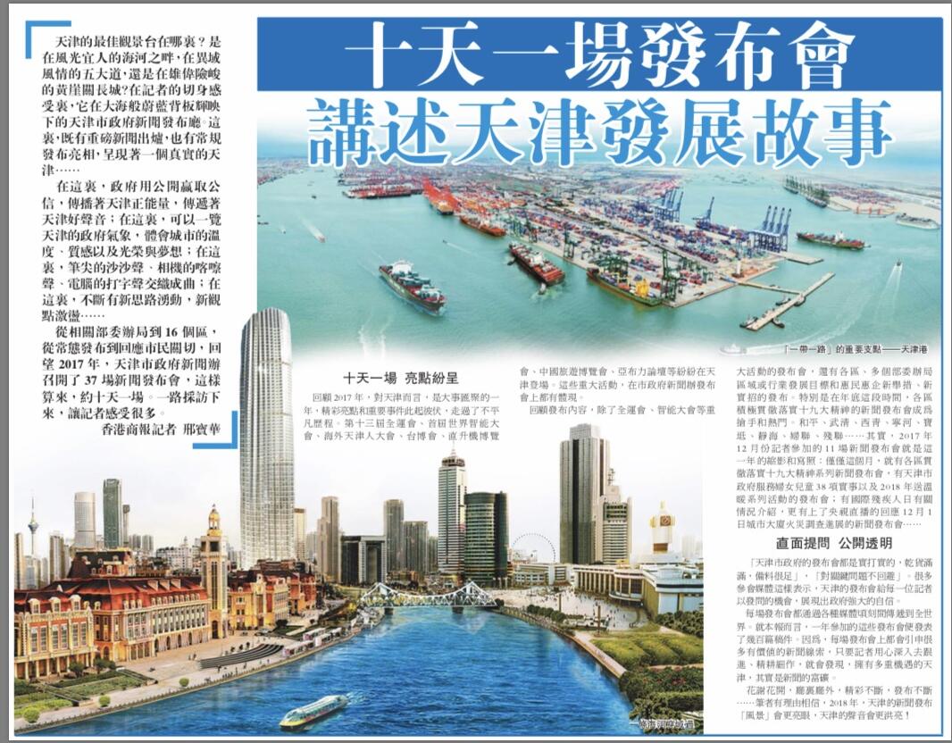 从相关部委办局到16个区,从常态发布到回应市民关切,回望2017年,天津市政府新闻办召开了37场新闻发布会,这样算来,约十天一场。一路采访下来,让记者感受很多。香港商报记者 邢宝华