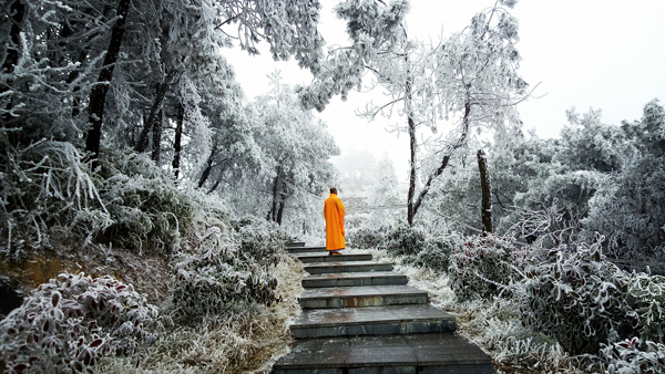 贵定阳宝山是贵州佛教名山,以佛教文化著称于世,兴盛于明清时期,与四川峨眉山、云南鸡足山并称为西南三大佛教名山,被誉为“黔东之胜”。几百年来,它以其雄奇、幽静、深邃、险峻引来无数游人和朝山拜佛者。阳宝山上有贵州绝无仅有并在中国罕见的和尚坟石刻塔林,面积上万平方米,计有石刻塔坟124座、和尚石墓71座、和尚土坟上百座,分属明代、清代、民国三个历史时期。在海拔1500多米的阳宝山上,漫山遍野的野草都冻成了“冰棍”,厚厚的白雪压弯了枝丫,俨然一幅岑参的“千树万树梨花开”的景象。