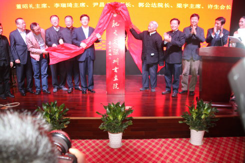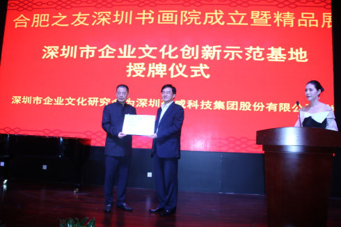下午四点,合肥之友深圳书画院隆重举行揭牌成立仪式。国家一级美术师、教授、国务院特殊津贴获得者郭公达任该院首任院长。商会会长、合肥之友深圳理事会会长许生亲自上台为其?授牌。