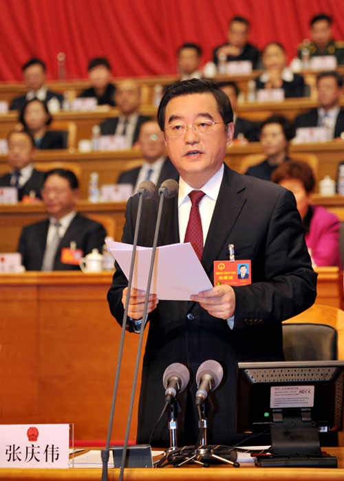 黑龙江省委书记、省人大常委会主任张庆伟在闭幕会上发表讲话。徐旭 蒋国红 邵国良/摄