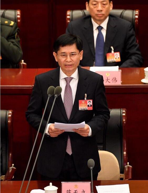 广西政协主席蓝天立在闭幕式上发表讲话。俞靖 摄。