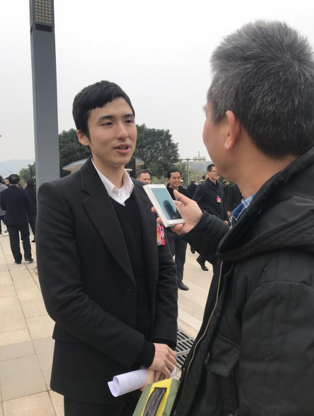 广西政协常委蔡加讚接受记者采访。