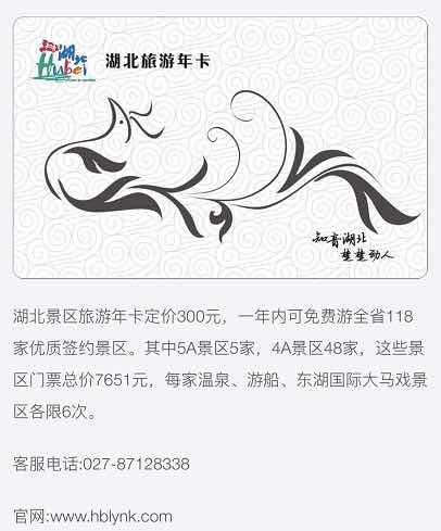 据了解,三和融通旗下“湖北旅游年卡”定价300元,签约景区从最初的88家增加到118家,能免费泡温泉、坐游船、看大马戏、赏汉秀、观武网,一次性门票价值达7651元。“大武汉旅游卡”,定价200元,并被武汉市政府列为2013年民生工程的十件实事之一,如今有签约景区35家、温泉3家和旅游观光游船2家,销量也从2013年的4.35万张增长到2017年36.91万张;“黄陂惠民旅游卡”,免费给黄陂居民发放;黄冈旅游一票通,定价120元,签约景区18家;黄石旅游年卡,定价100元,签约景区18家;随州旅游年卡,价值100元,签约景区8家,在全省形成了“春踏青看百花,夏漂流享清凉,秋登高赏红叶,冬灯会泡温泉”的多梯度旅游卡产品。