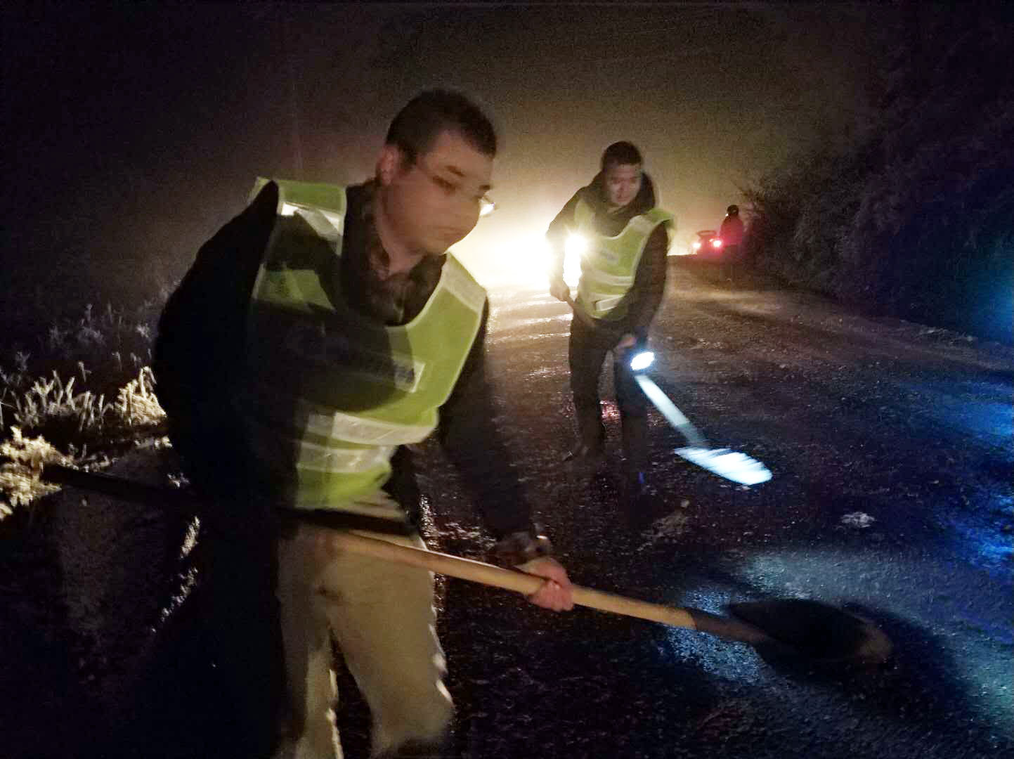 受到寒风的刺激,潘庆树惺松的双眼,早已精神了许多。当老百姓还在暖和的被窝里酣睡时,潘庆树和他的“战友”们,已行进在抗凝冻保畅通的路上了。