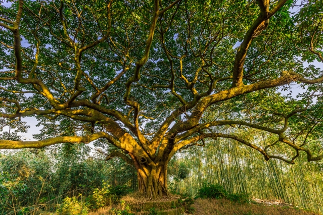 “神树奇观”在长宁县梅硐镇两河村四社小地名月江坳那里,树龄1000年,树高25米,胸围16米,平均冠经60米。据当地老人讲,相传当地山上农产品资源丰富,常有掠夺者到此山欺压村民,村民为了守住山上的家产,在月江坳山顶上种下一棵横桷树,用于观察来犯之敌,以便发出狼烟通知村民一同对抗来犯之敌,自从有了“神树”, 掠夺者越来越少,人们开始过上平安生活,因“神树”在先辈们心中有神圣地位,被一代又一代的当地人保护了起来。后来,村民为了祭事需要,在“神树”前贡奉了地土财神和观音菩萨。