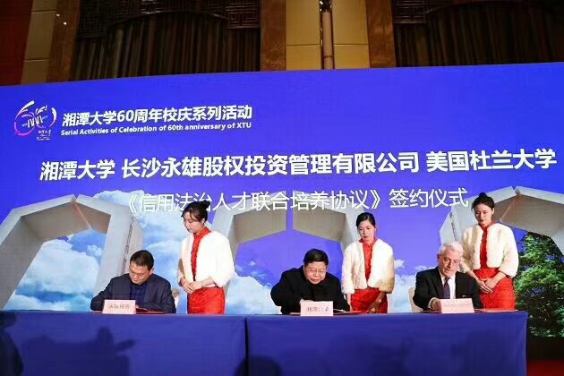 “我校成立信用风险管理学院,开创信用法治人才培养模式,是国家社会信用体系建设的现实需要。”黄云清说,此次协作会将成为湘潭大学信用法治学科建设构建高端学术研究平台、社会服务平台和国际合作平台的新起点。 同时,为推动理论研究和人才培养国际化,湘潭大学和美国杜兰大学联合成立“杜兰-永雄国际信用法律研究中心”,并签署了《湘潭大学、长沙永雄股权投资管理有限公司与美国杜兰大学信用法治人才联合培养协议》。