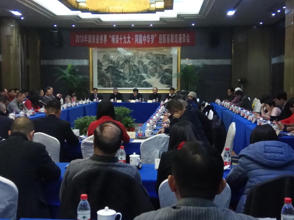 【香港商报网讯】2月8日,湖南省侨联主办“畅谈十九大·同圆中华梦”迎新春联谊座谈会。省侨联领导朱建山、罗碧野、孙民生、郭剑虹、吴金水、翁少兰、向长江,省政协港澳台侨和外事委员会、致公党湖南省委、省人大民侨外委、省外侨办、省公安厅出入境管理局、省财政厅等省直单位领导和相关处室、省侨联机关各处室负责人及来自美国、法国等19个国家和地区的70余名湘籍海外侨领侨胞共90余人参加,畅谈十九大,共话侨界新事喜事,畅叙深情厚谊。