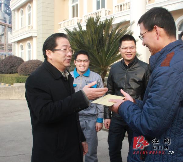 谭本仲一行先后来到三江磁材、葛洲坝特种水泥、海螺水泥、捷源玻纤、长安石门发电、大唐石门发电、湘佳牧业、成功高分子材料、安德丰新能源、湖南二化民爆等企业走访慰问。