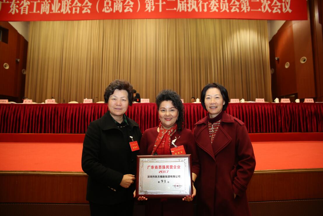 【香港商报网讯】2018年1月5日,广东省工商业联合会(总商会)第十二届二次执委会议在广州白云国际会议中心隆重举行,广东省委常委曾志权、广东省委统战部副部长、广东省工商联党组书记郭汉毅、广东省纪委驻省委统战部纪检组组长李家瑞、深圳市工商联党组书记蔡立等领导及各企业家代表参加了会议,东方银座集团董事局副主席钟帆飞受邀参会。东方银座集团凭借出色的业绩表现和雄厚的综合实力上榜"2017广东省百强民营企业”。