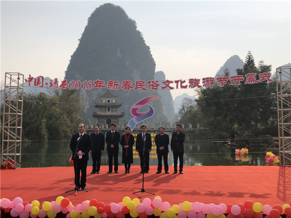 【香港商报网讯】2月9日,中国·靖西2018年新春民俗文化旅游节在靖西市旧州古镇开幕,活动以"山水边城·锦绣靖西"为主题,通过举行年货一条街、壮民俗文化大巡游等一系列活动,突出展示靖西的边关风情和独特民俗,将旅游与春节文化结合,打造靖西民俗文化旅游品牌。