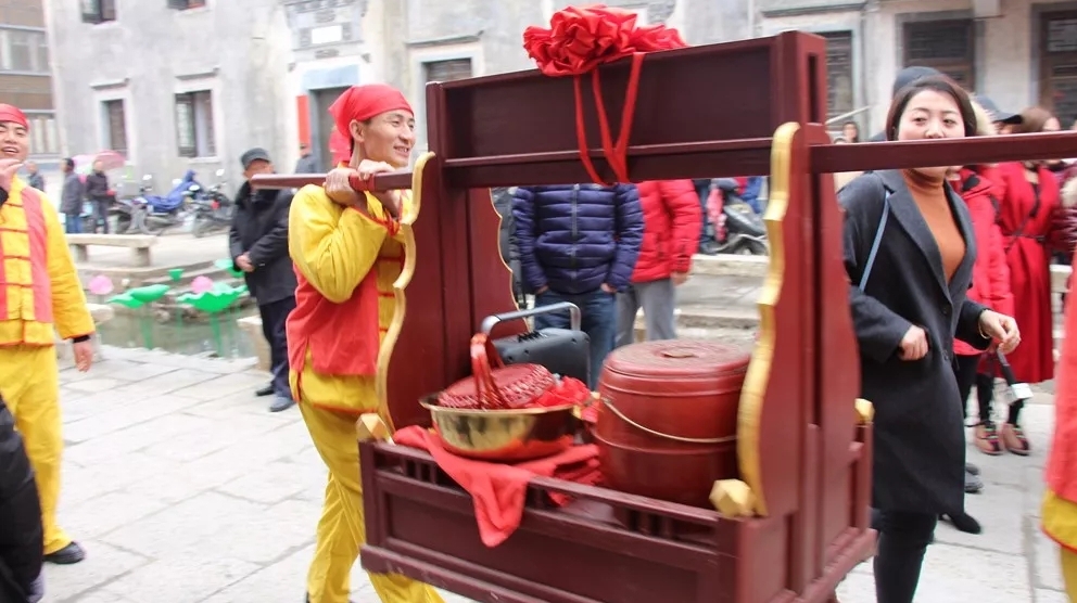 【香港商报网讯】记者吴敏报道:锣鼓喧天、龙腾狮舞、徽派戏曲、婚俗表演等让人目不暇接,徽州传统小吃、徽州特色商品等各类年货琳琅满目,千年古桥通济桥两侧,挂满了镌刻市民姓名的红色幸福(祈愿)牌,成了一道风景 ……日前,安徽省历史文化名城——黟县古城“荣归黟家”年货节启幕。