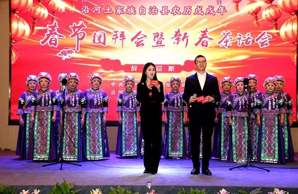 【香港商报网讯】记者黄庆松、通讯员罗猛、肖玉叶报道:2月12日,沿河土家族自治县2018年春节团拜会暨新春茶话会在思州酒店二楼多功能会议厅召开。省市驻沿单位、县直各部门、各乡(镇、街道)负责人,政协委员、各党派人士、各行各业优秀代表共200多人欢聚一堂,共话发展。