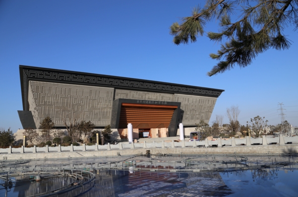 遗址博物馆设计采用了两轴五区的空间格局,形成极为严整而富有变化的空间序列,通过对梁带村出土文物镂空方盒简化提炼,融合现代化元素,庄严凝重,气势恢宏,是一座传统与现代相结合的大型博物馆。