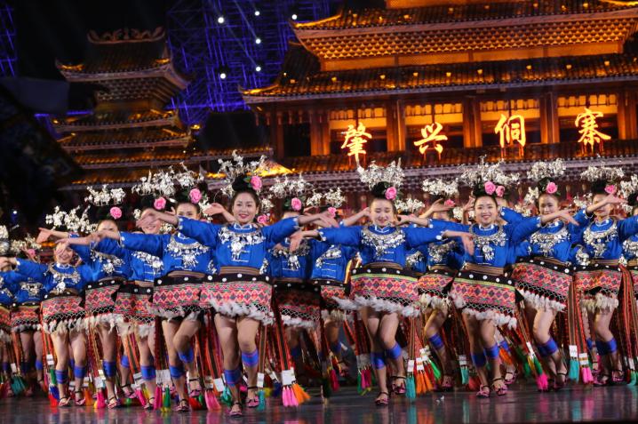 当晚肇兴分会场,由数百名侗族同胞组成的合唱团唱响侗族大歌《尽情欢歌》,没有指挥、没有伴奏,歌声中透露着喜庆的氛围。