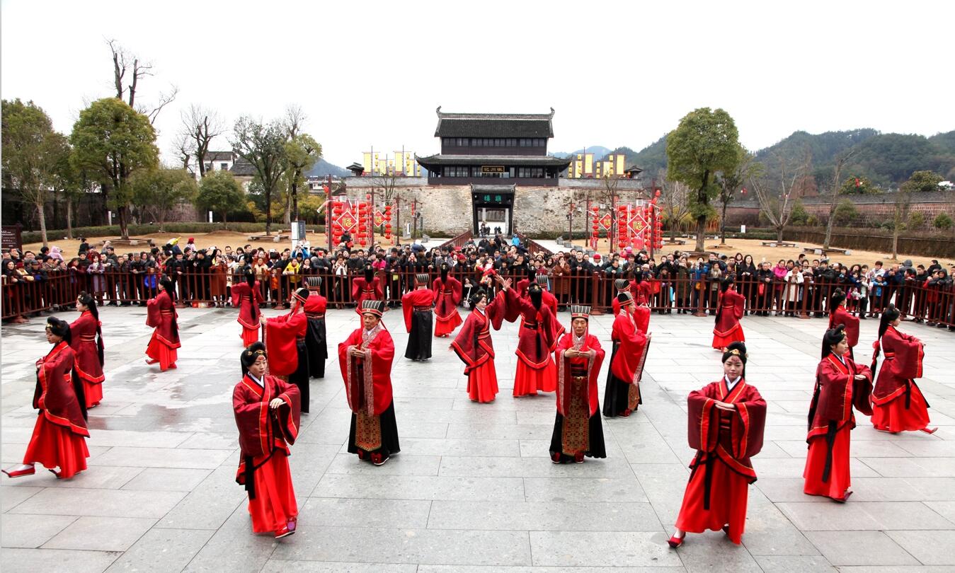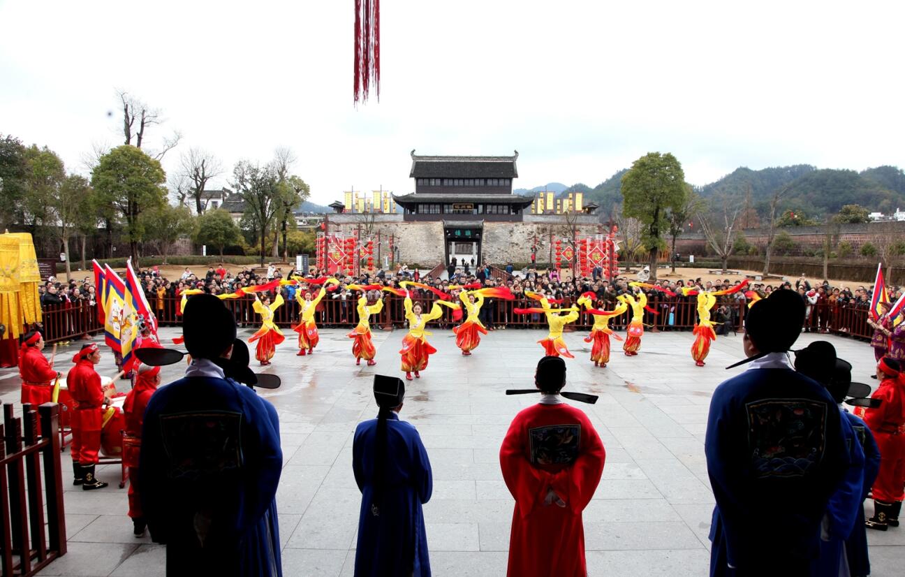 【香港商报网讯】记者吴敏 通讯员吴建平报道:2月21日,安徽歙县徽城镇府衙广场,众多游客在观看徽州古典民俗大戏《礼仪之邦》。