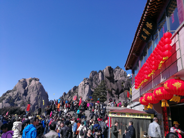 大年三十,黄山风景区接待海内外游客1828人,全山洋溢着热闹喜庆、安全有序的节日氛围。