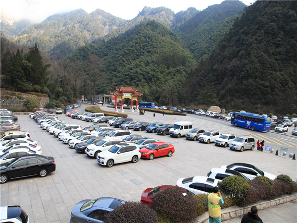 为保障高峰时段的交通顺畅,黄山风景区交警部门全员上岗,黄山南大门段以高速口为重点集中安排执勤力量近300人,采取间隔放行措施,引导车辆通行和停放,确保高速口至景区内旅游客运大动脉安全、畅通。黄山南大门停车场、南大门立体停车场、南大门应急停车带及管委会职工停车场共8000多停车位,均对游客车辆开放。