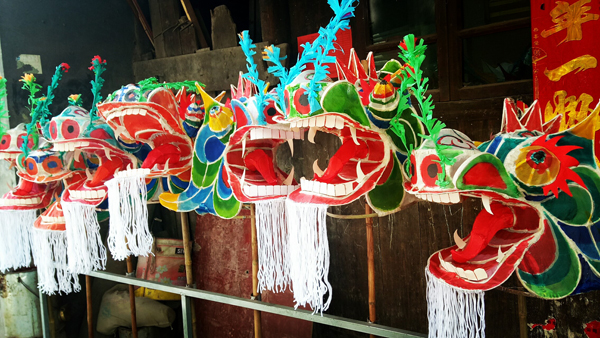 在台江西街老街上记者看到,几户扎龙的民间艺人正在忙碌的给龙头上色,几个村民正在给自己的子女挑选小龙灯。龙灯分为“亮龙”和“硬龙”两种,亮龙用绸布蒙成,硬龙用篾条扎制而成,用彩纸糊成。