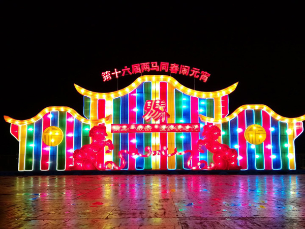 现场记者了解到,此次灯会还专门设置了“两马”灯区。其中,“迎春”灯组通过创意设计,采用牌楼形式,以喜庆红色调为主,寓意“两马”对新年的美好祝福;“同春”灯组以两匹马憨态可掬、喜气洋洋的卡通形象,伫立于大红灯笼上敲锣打鼓,一样的动作协调,一样的欢喜满溢,可触可感,生动活泼;马祖的灯组依然以其深具地理人文特色的品牌为元素,妈祖女神、东瀛灯塔、马祖高粱、“蓝眼泪”等等,朴实而熟悉,亲切而含期待。