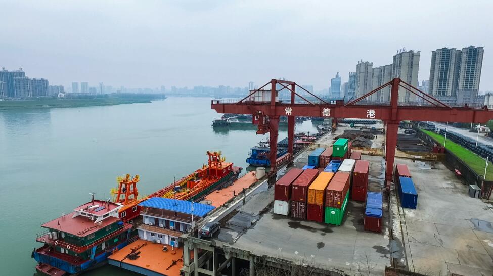 常德计划在“十三五”期间,加快重点港口码头建设,重振常德通江达海大航道、大水运优势。目前在建的1000吨级码头就有5个。图为常德港。